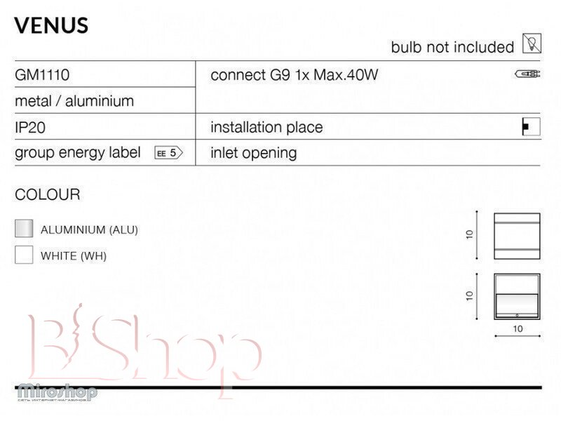 Кількість ламп: 1. Тип цоколя: G9. Висота (див): 10. Ширина (див): 10. Потужність лампи (Вт): 40. Довжина (див): 10.