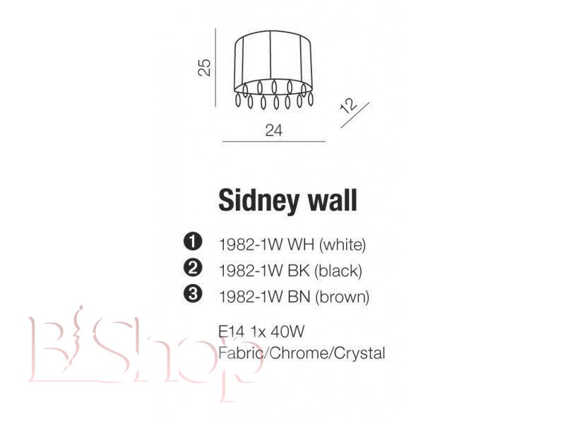 Кількість ламп: 1. Тип цоколя: E14. Висота (див): 25. Ширина (див): 24. Потужність лампи (Вт): 40.