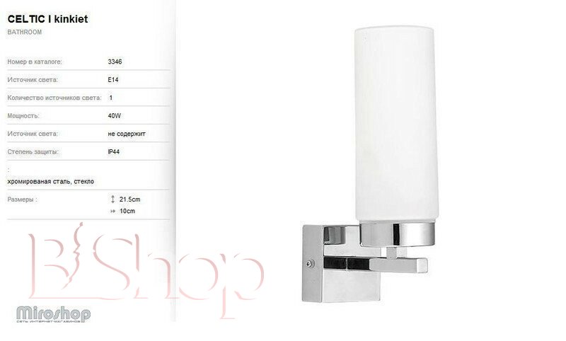 - Категорія товару: Світильники для ванною