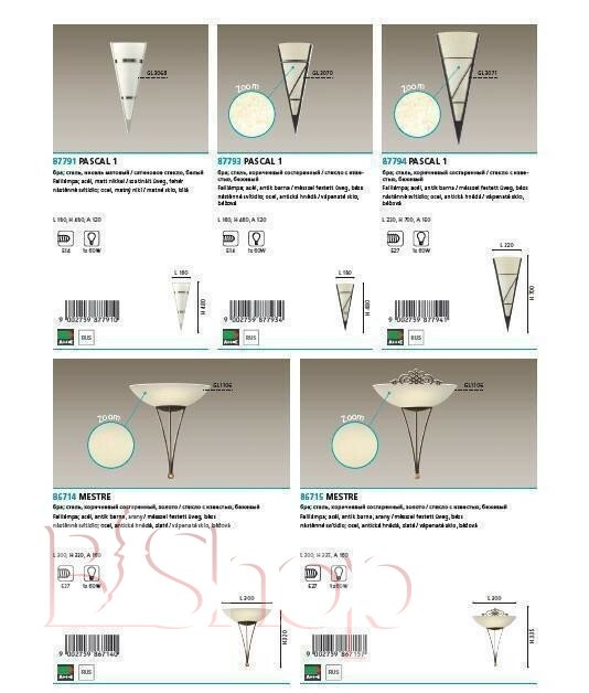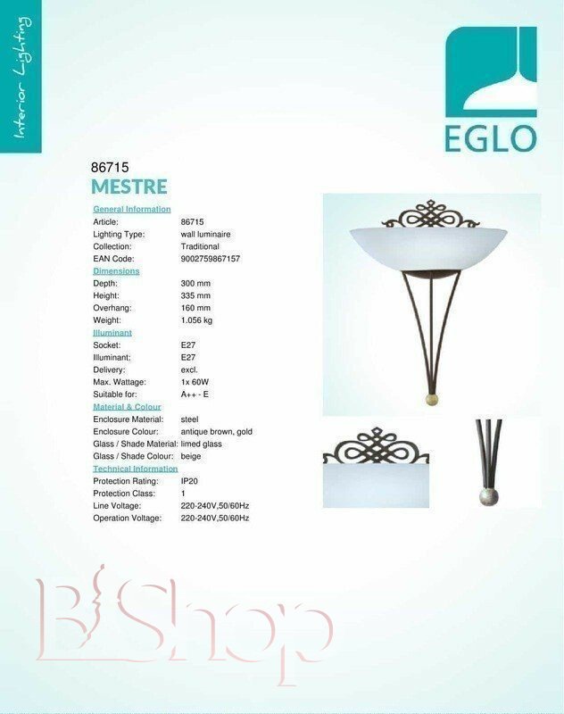 Кількість ламп: 1. Тип цоколя: E27. Висота (див): 33.5. Ширина (див): 30. Глибина (див): 16. Потужність лампи (Вт): 60.