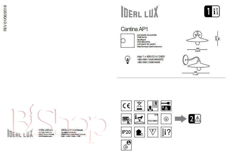 Бра Ideal Lux CANTINA AP1 BRUNITO (112626) (87785)