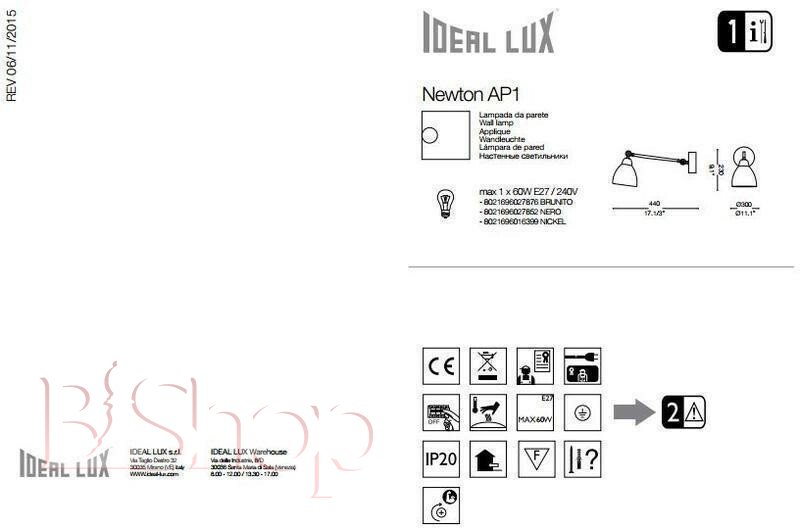 Бра Ideal Lux NEWTON AP1 NERO (027852) (81297)