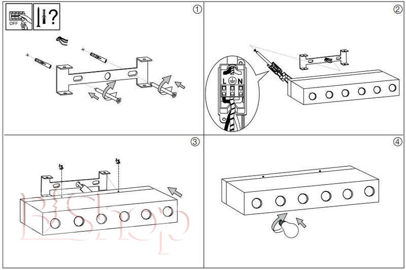 Кількість ламп: 6. Тип цоколя: E14. Висота (див): 4. Потужність лампи (Вт): 40. Довжина (див): 61.