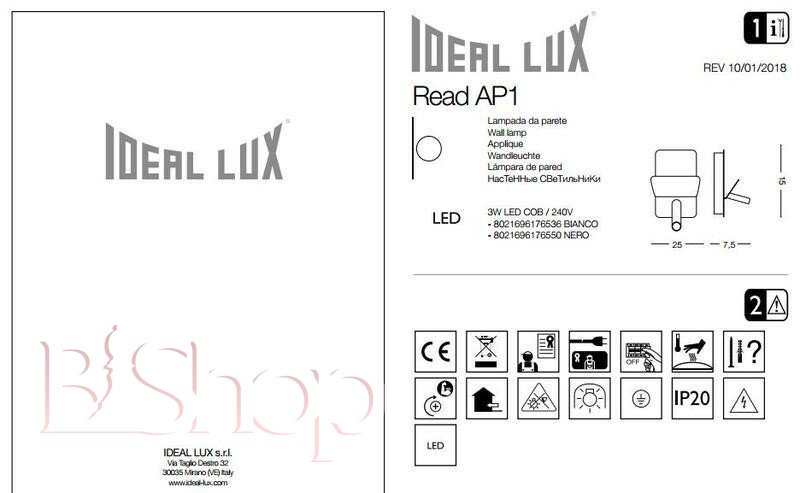 Бра Ideal Lux READ AP1 BIANCO (176536) (13067)