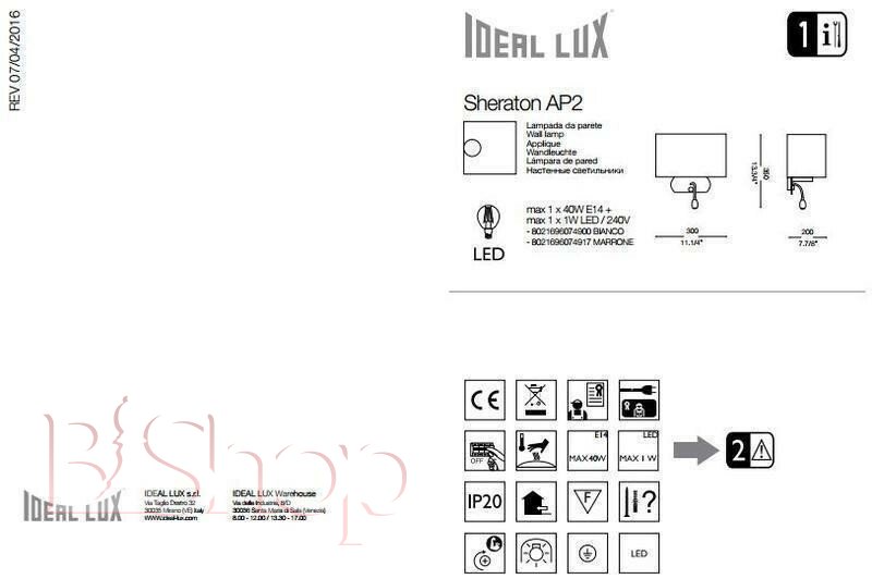 Кількість ламп: 1. Тип цоколя: E14. Висота (див): 35. Потужність лампи (Вт): 40. Довжина (див): 30.