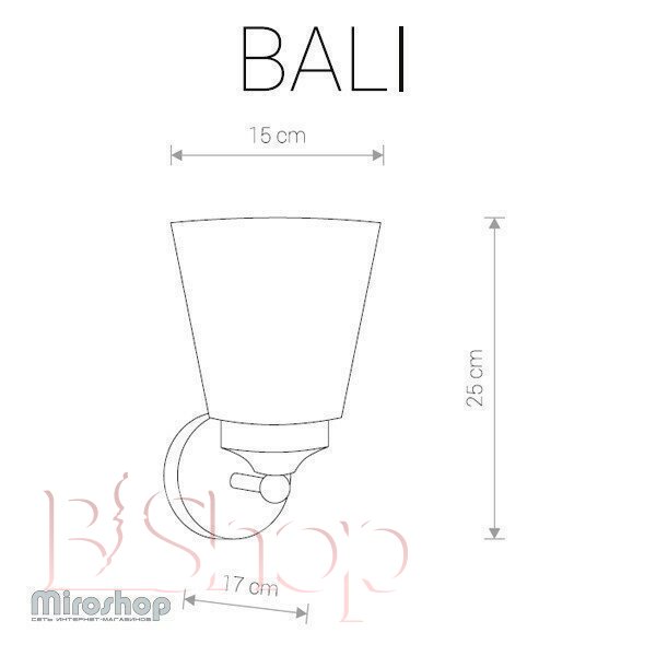Кількість ламп: 1. Тип цоколя: E14. Висота (див): 25. Ширина (див): 15. Глибина (див): 17. Потужність лампи (Вт): 25.