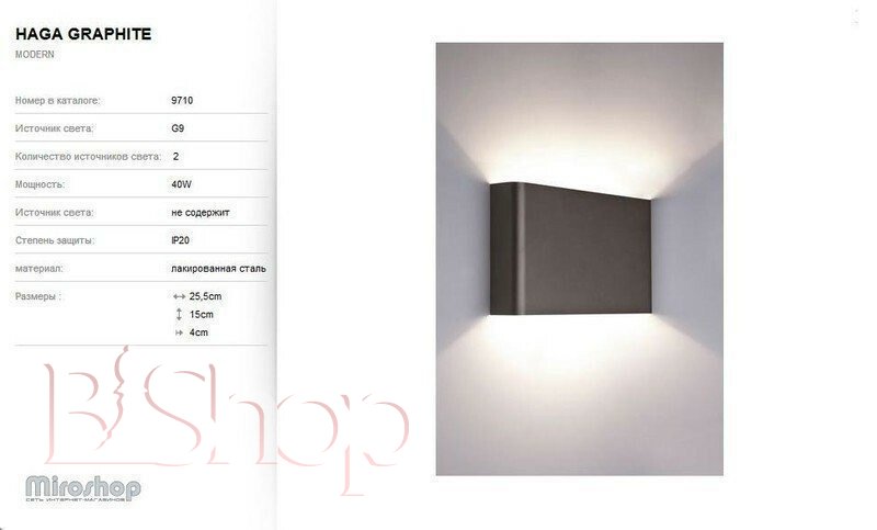Кількість ламп: 2. Тип цоколя: G9. Висота (див): 15. Ширина (див): 25.5. Глибина (див): 4. Потужність лампи (Вт): 40.