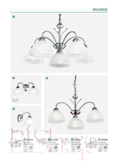 Кількість ламп: 2. Тип цоколя: E14. Висота (див): 19. Потужність лампи (Вт): 60. Довжина (див): 41.