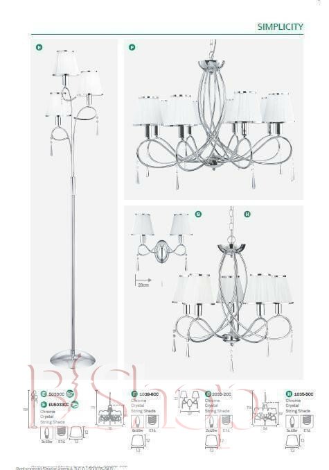 Кількість ламп: 2. Тип цоколя: E14. Висота (див): 32. Потужність лампи (Вт): 40. Довжина (див): 37.