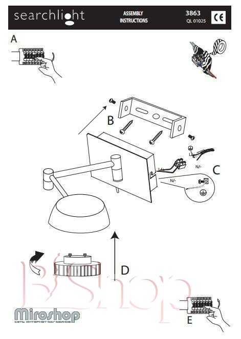 Бра Searchlight 3863CC Wall Adjustable Arms (21298)