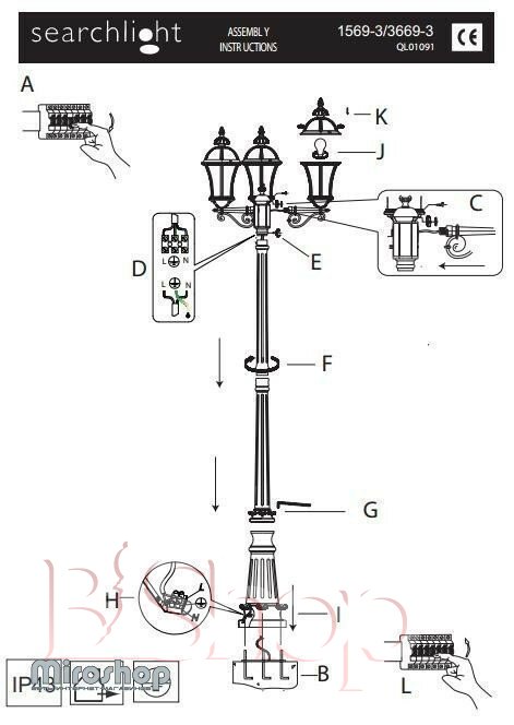 Ліхтарний стовп Searchlight 1569-3 Capri (21312)
