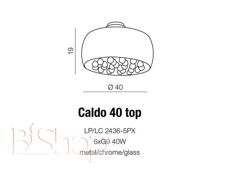 Кількість ламп: 5. Тип цоколя: G9. Висота (див): 21. Потужність лампи (Вт): 40. Діаметр (див): 40.