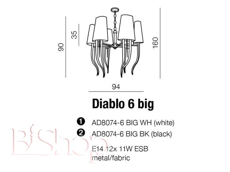 Люстра Azzardo AZ1390 Diablo 6 big (black) (AD8074-6-BIG-BK-CH) (15448)