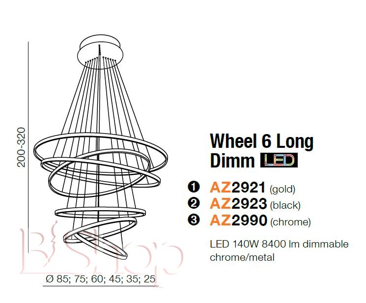 Кількість ламп: 1. Тип цоколя: LED. Висота (див): 320. Потужність лампи (Вт): 140. Діаметр (див): 85.