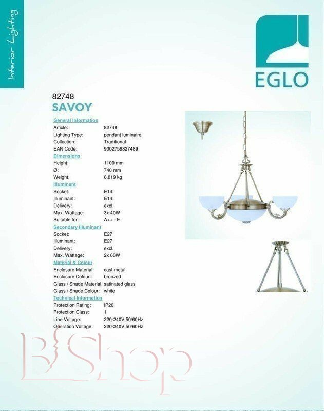 Кількість ламп: 3. Тип цоколя: E14. Висота (див): 110. Потужність лампи (Вт): 40. Діаметр (див): 74.