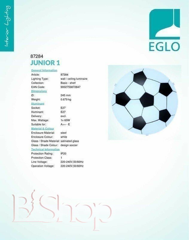 Кількість ламп: 1. Тип цоколя: E27. Потужність лампи (Вт): 60. Діаметр (див): 25.