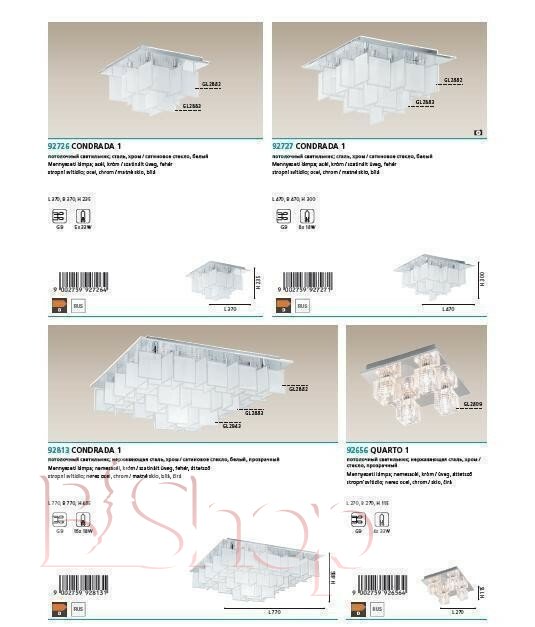 Кількість ламп: 5. Тип цоколя: G9. Висота (див): 24. Ширина (див): 37. Потужність лампи (Вт): 33. Довжина (див): 37.