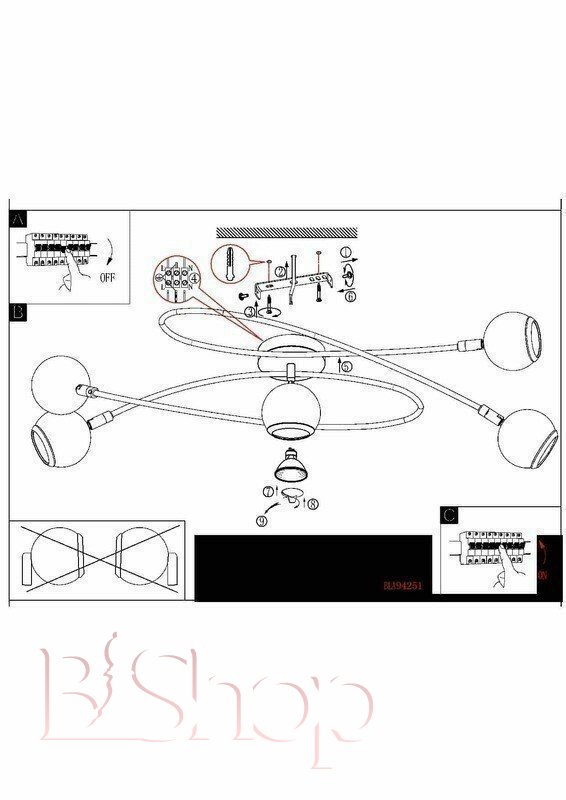 Кількість ламп: 5. Тип цоколя: LED. Ширина (див): 48. Потужність лампи (Вт): 3. Довжина (см): 85.