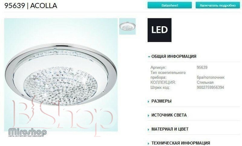 Кількість ламп: 1. Тип цоколя: LED. Висота (див): 8.5. Потужність лампи (Вт): 8.2. Діаметр (див): 29.