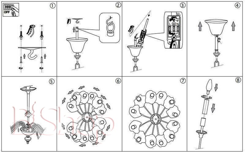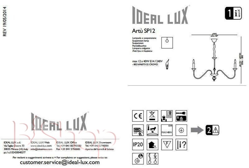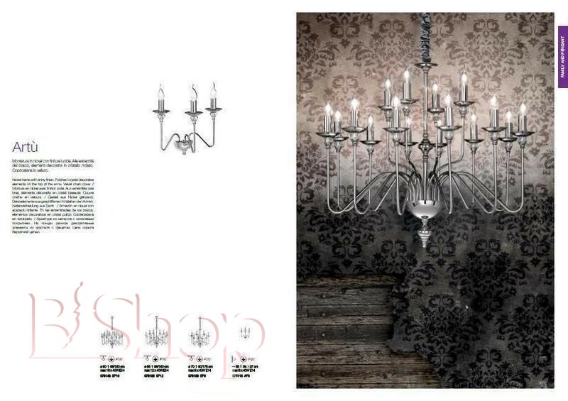 Кількість ламп: 12. Тип цоколя: E14. Висота (див): 180. Потужність лампи (Вт): 40. Діаметр (див): 86.