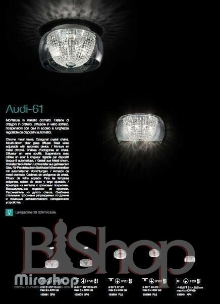 Кількість ламп: 6. Тип цоколя: G9. Висота (див): 24. Потужність лампи (Вт): 40. Діаметр (див): 40.