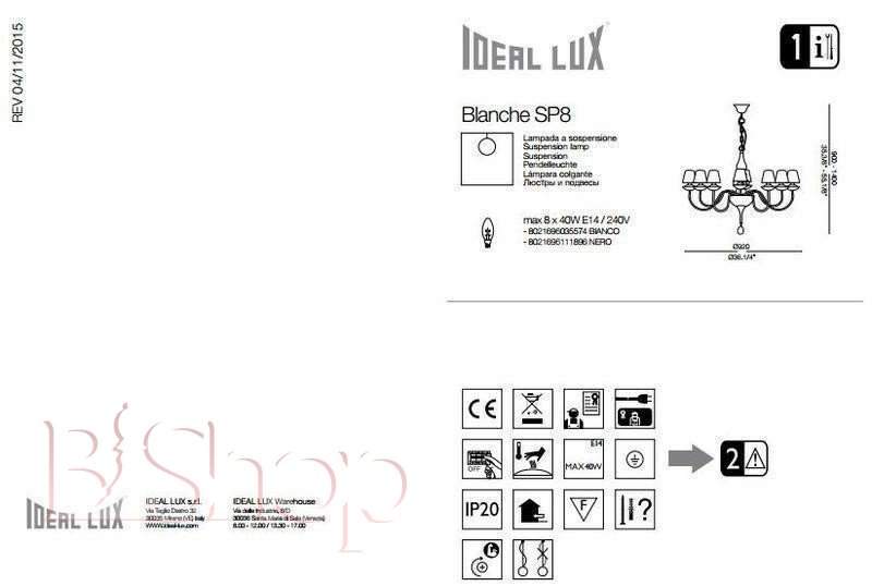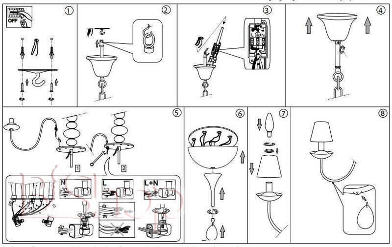 Кількість ламп: 8. Тип цоколя: E14. Висота (див): 140. Потужність лампи (Вт): 40. Діаметр (див): 92.