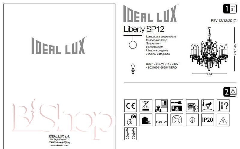 Люстра Ideal Lux LIBERTY SP12 (166551) (13353)