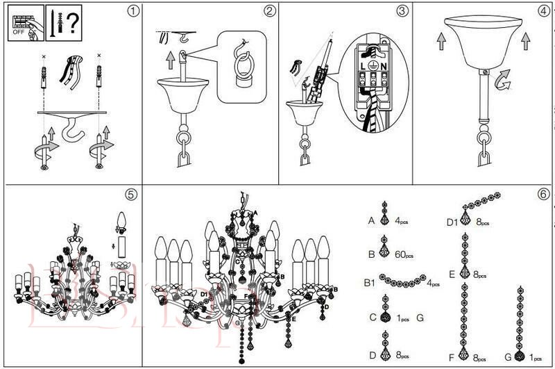 Кількість ламп: 12. Тип цоколя: E14. Висота (див): 147. Потужність лампи (Вт): 40. Діаметр (див): 64.