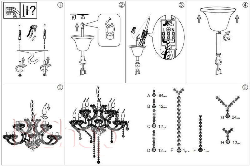 Кількість ламп: 18. Тип цоколя: E14. Висота (див): 170. Потужність лампи (Вт): 40. Діаметр (див): 94.