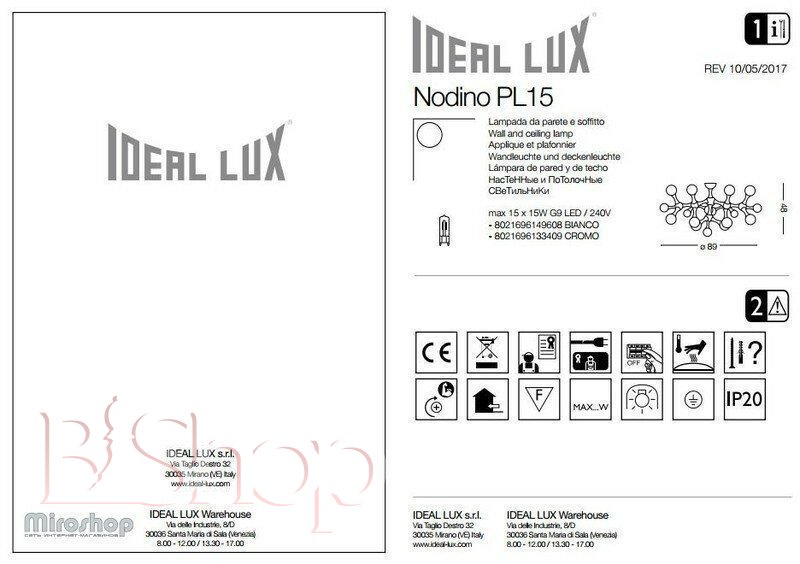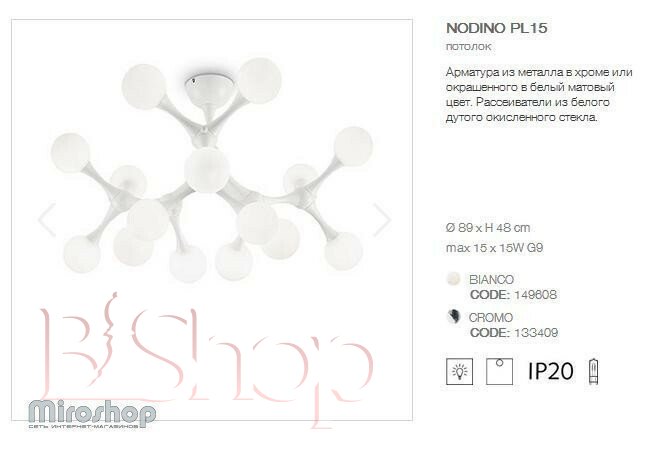 Люстра Ideal Lux NODINO PL15 BIANCO (149608) (93878)