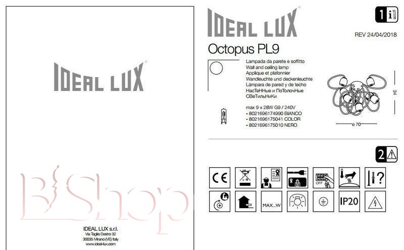 Люстра Ideal Lux OCTOPUS PL9 COLOR (175041)