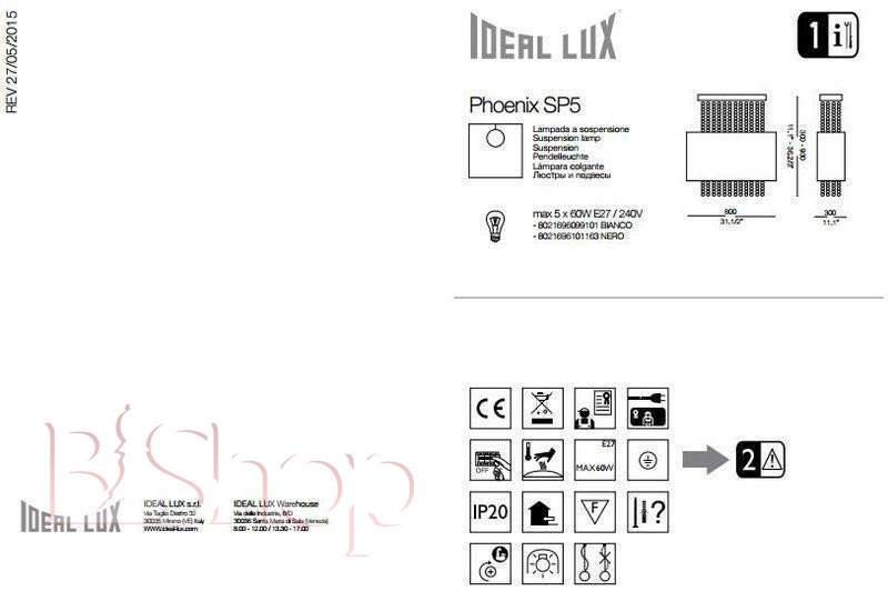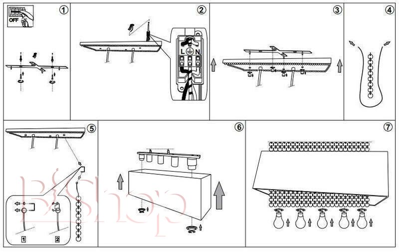 Кількість ламп: 5. Тип цоколя: E27. Висота (див): 93. Ширина (див): 30. Потужність лампи (Вт): 60. Довжина (див): 80.