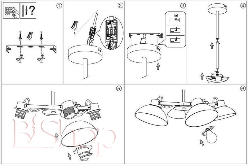 Кількість ламп: 6. Тип цоколя: E27. Висота (див): 41.5. Потужність лампи (Вт): 60. Діаметр (див): 52.5.