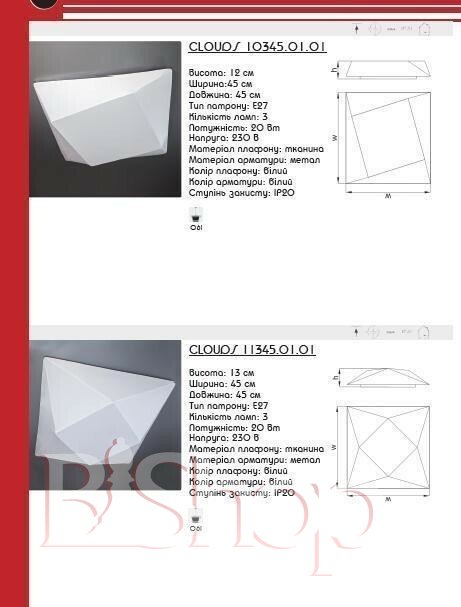 Кількість ламп: 3. Тип цоколя: E27. Висота (див): 12. Ширина (див): 45. Потужність лампи (Вт): 20. Довжина (див): 45.