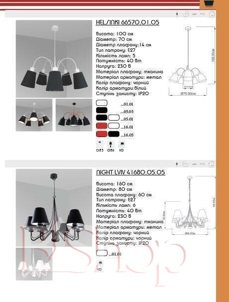 - Колір плафонів і підвісок: Чорний