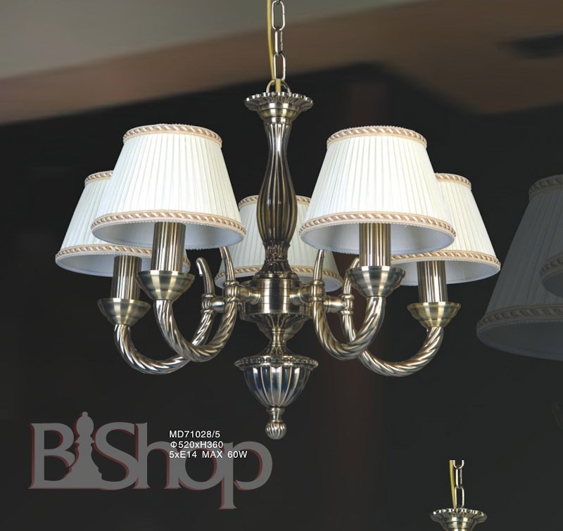 Кількість ламп: 5. Тип цоколя: E14. Висота (див): 36. Потужність лампи (Вт): 60. Діаметр (див): 52.