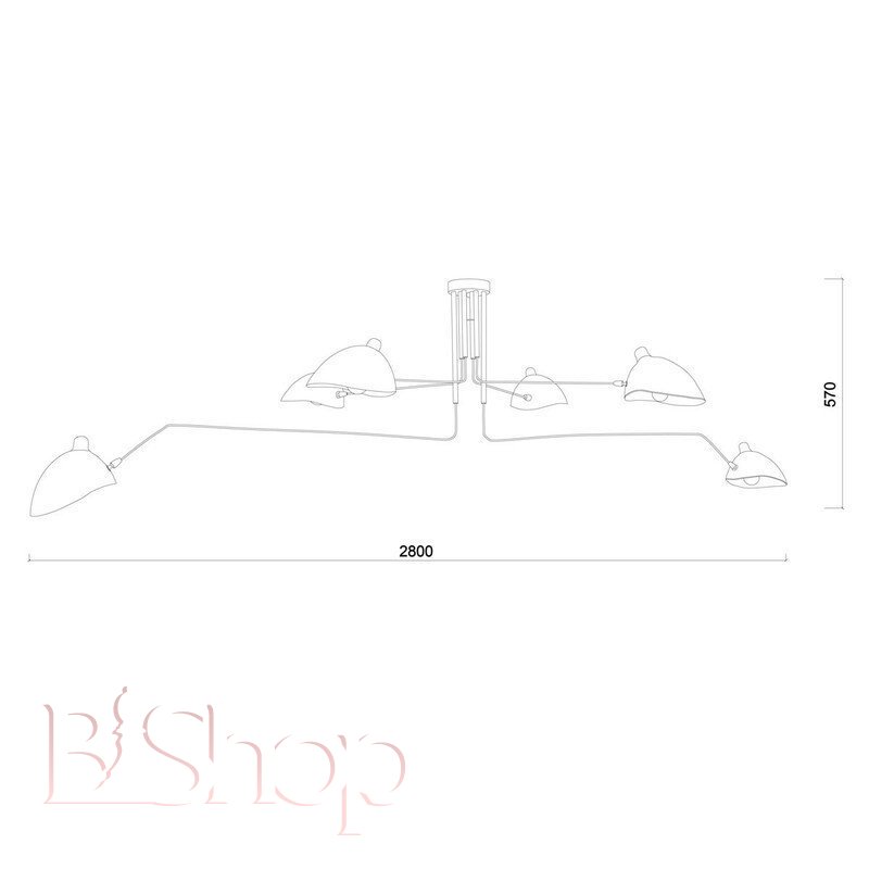 Кількість ламп: 6. Тип цоколя: E27. Висота (див): 15. Ширина (див): 280. Потужність лампи (Вт): 60.