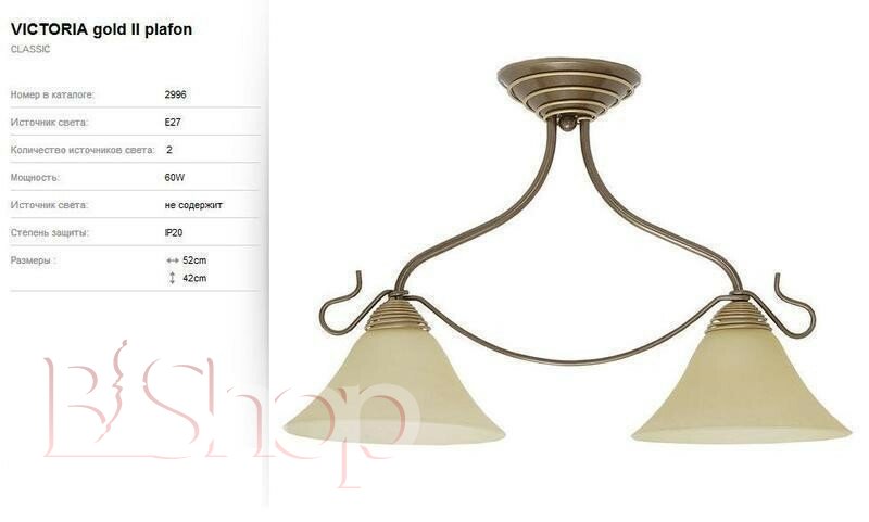 Кількість ламп: 2. Тип цоколя: E27. Висота (див): 42. Ширина (див): 52. Потужність лампи (Вт): 60.