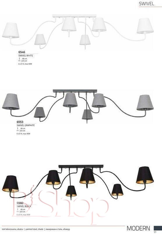 Кількість ламп: 6. Тип цоколя: E14. Висота (див): 48. Ширина (див): 225. Потужність лампи (Вт): 60.