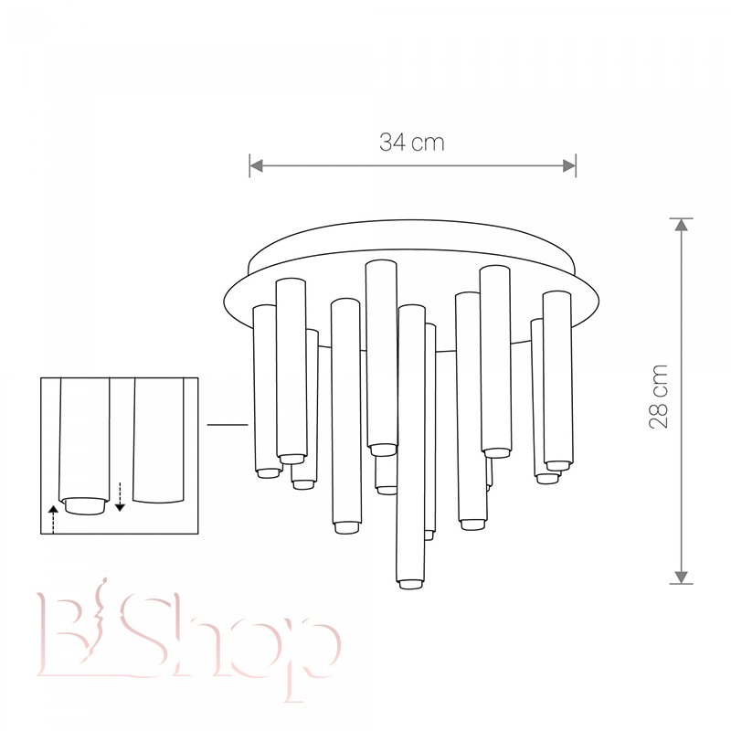 Кількість ламп: 13. Тип цоколя: G9. Висота (див): 28. Потужність лампи (Вт): 10. Діаметр (див): 34.