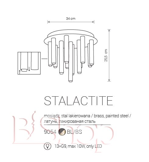 Кількість ламп: 13. Тип цоколя: G9. Висота (див): 25.5. Потужність лампи (Вт): 10. Діаметр (див): 34.