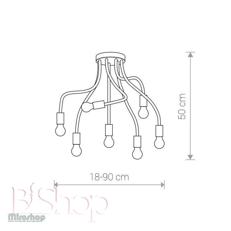 Кількість ламп: 7. Тип цоколя: E27. Висота (див): 50. Потужність лампи (Вт): 60. Діаметр (див): 90.