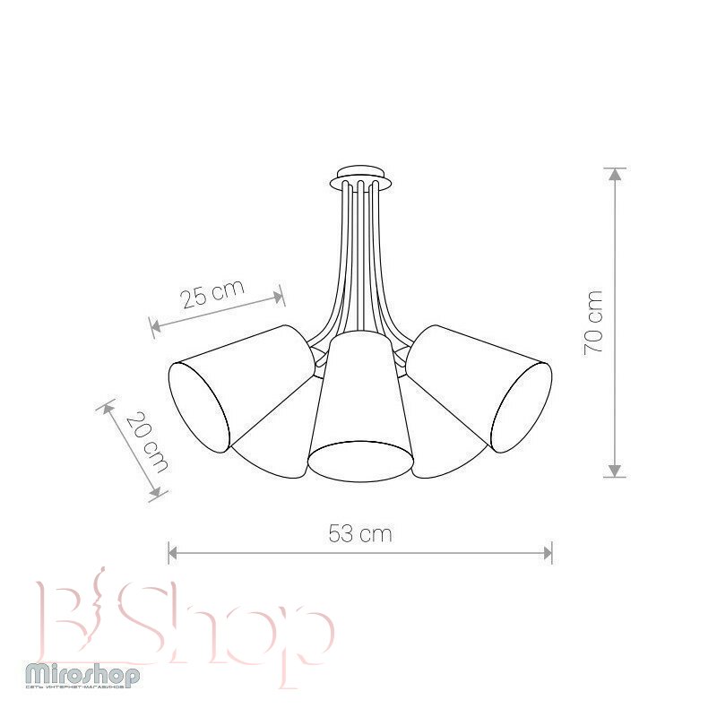 Кількість ламп: 5. Тип цоколя: E27. Висота (див): 70. Потужність лампи (Вт): 60. Діаметр (див): 53.