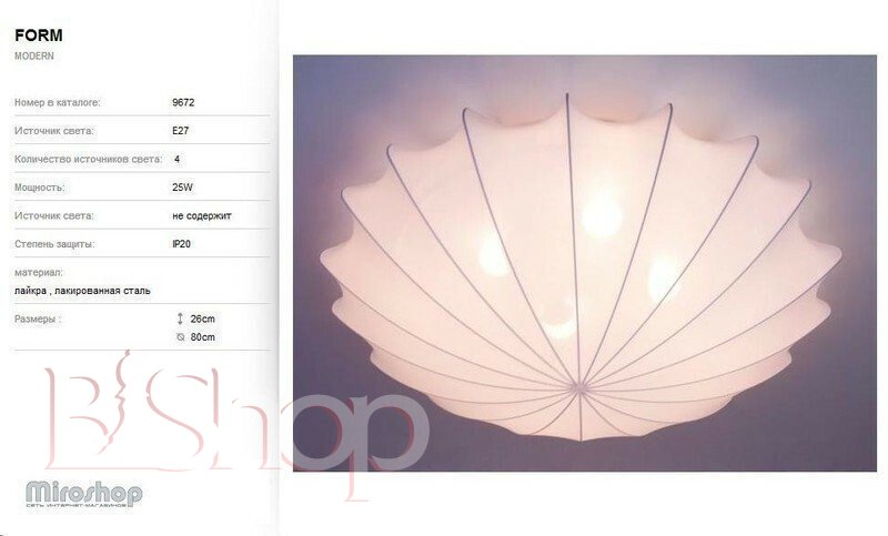Кількість ламп: 4. Тип цоколя: E27. Висота (див): 26. Потужність лампи (Вт): 25. Діаметр (див): 80.