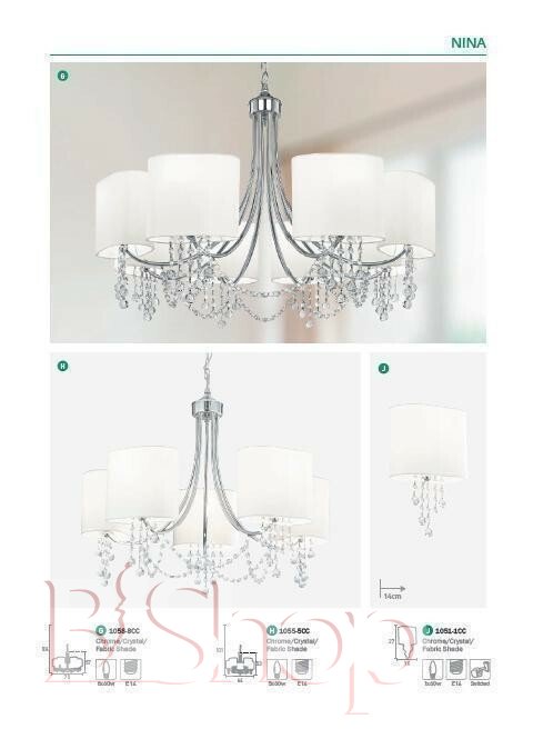 Кількість ламп: 8. Тип цоколя: E14. Висота (див): 106. Потужність лампи (Вт): 60. Довжина (див): 75.