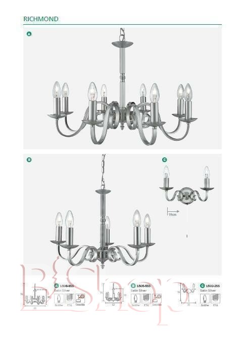 Кількість ламп: 5. Тип цоколя: E14. Висота (див): 94. Потужність лампи (Вт): 60. Діаметр (див): 52.