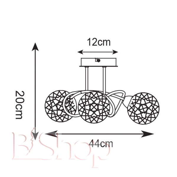 Кількість ламп: 3. Тип цоколя: G9. Висота (див): 20. Ширина (див): 44. Потужність лампи (Вт): 33.