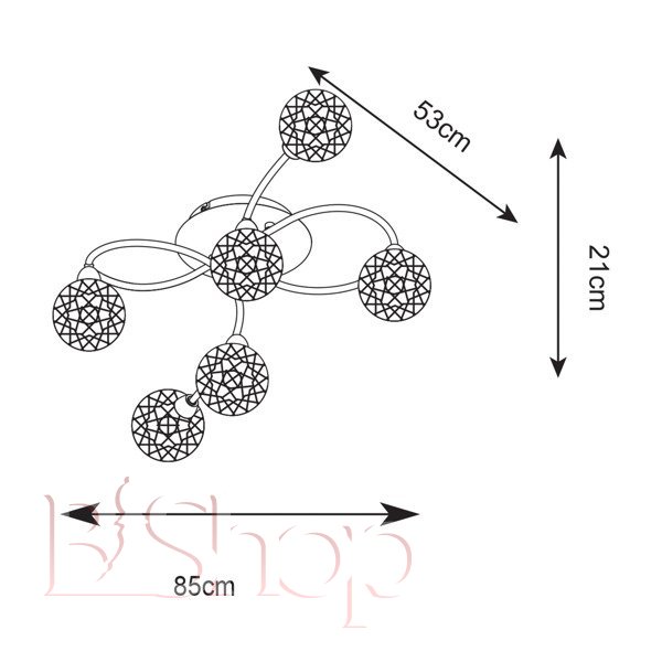 Кількість ламп: 6. Тип цоколя: G9. Висота (див): 21. Ширина (див): 53. Потужність лампи (Вт): 33. Довжина (див): 85.