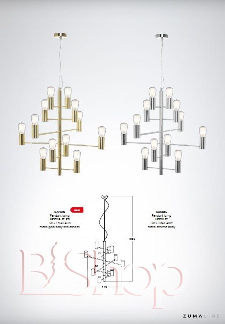 Кількість ламп: 12. Тип цоколя: E27. Висота (див): 170. Ширина (див): 72. Потужність лампи (Вт): 40.