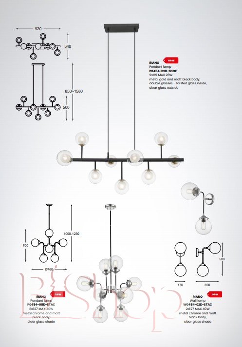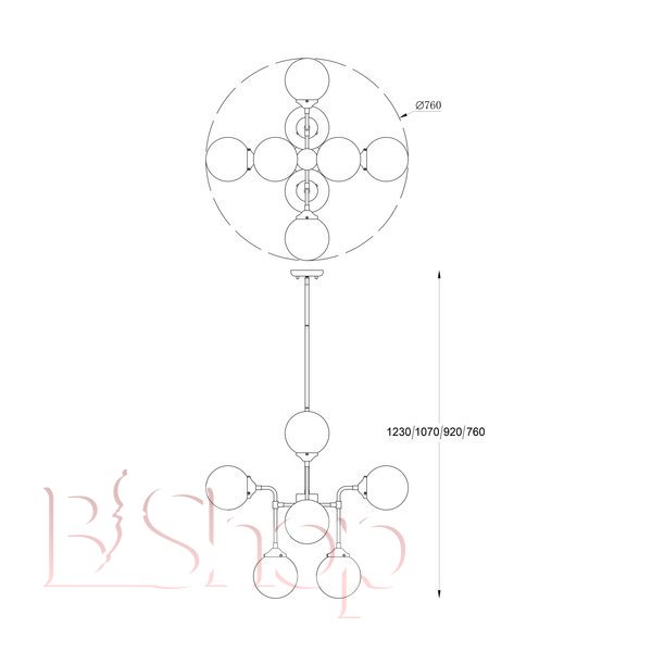 Кількість ламп: 8. Тип цоколя: E27. Висота (див): 123. Ширина (див): 76. Потужність лампи (Вт): 40. Довжина (див): 92.